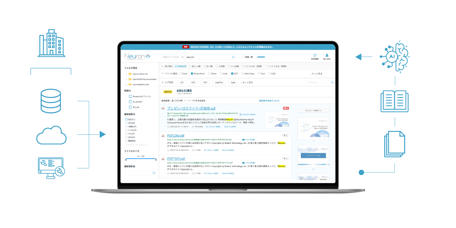 社内情報の検索性向上にNeuron ES、ファイルサーバ肥大化の制御にNSRをご活用
